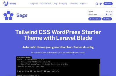 Sage is an advanced WordPress starter theme that brings Laravel Blade templating, Tailwind CSS, and a modern Vite-powered build workflow to custom WordPress theme development.